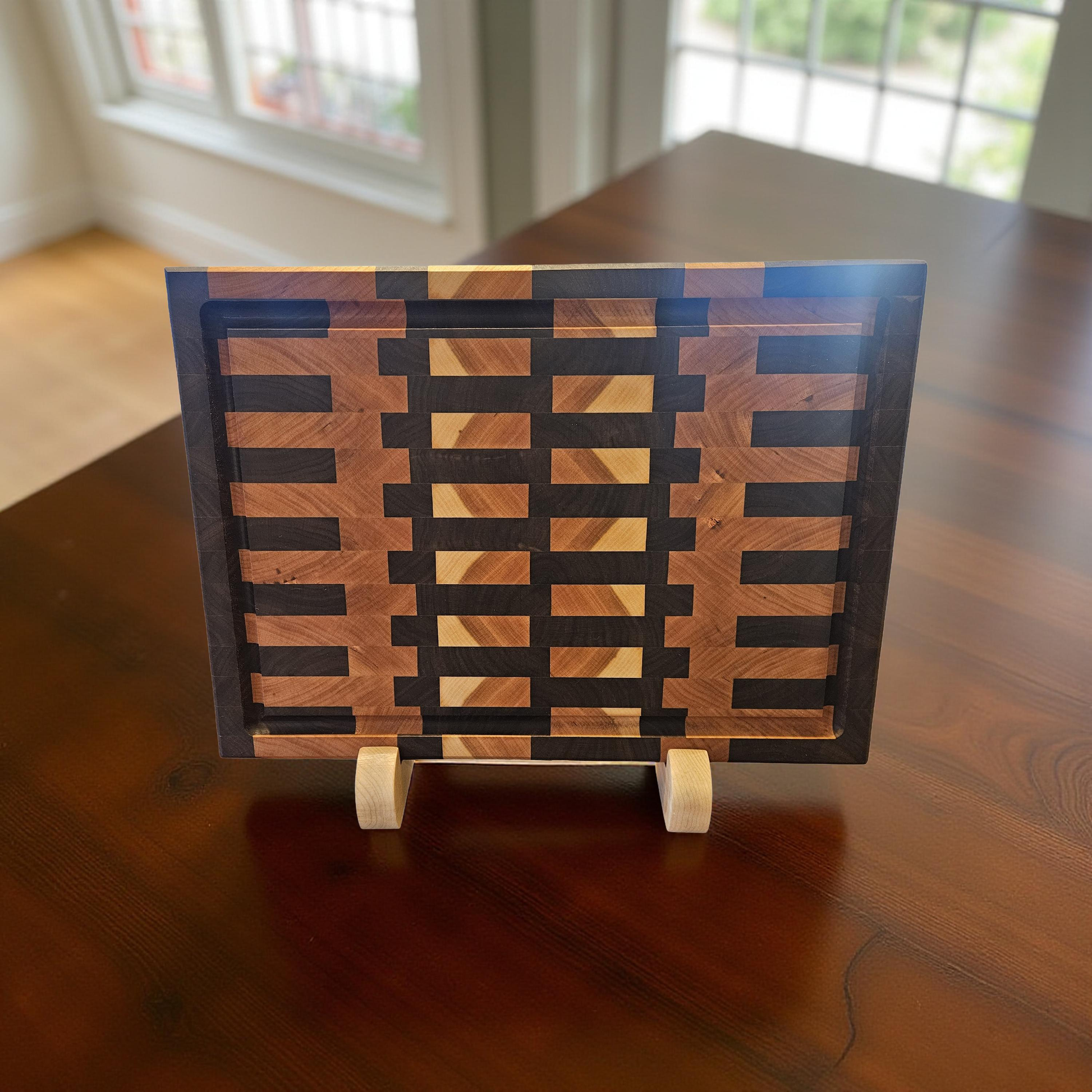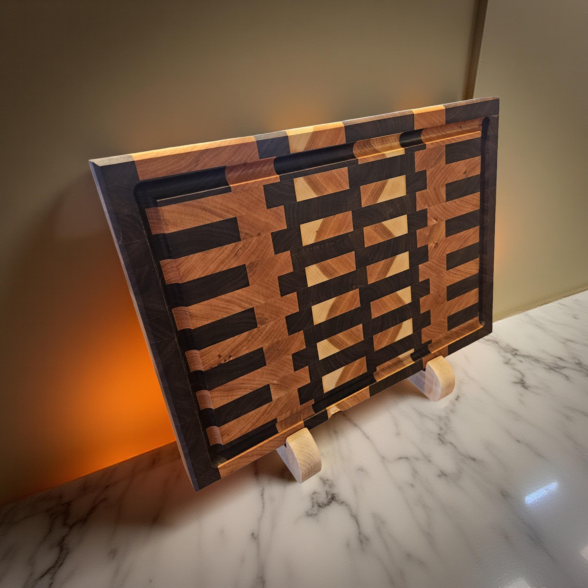 Crafted from durable black walnut and cherry, this butcher block offers a robust cutting surface designed specifically for serious home chefs. Featuring a juice groove to catch liquids and rubber feet for stability, it protects your countertops while maintaining a safe workspace. Its carefully chosen wood composition ensures your knives stay sharp longer, providing a reliable and efficient prepping experience.
